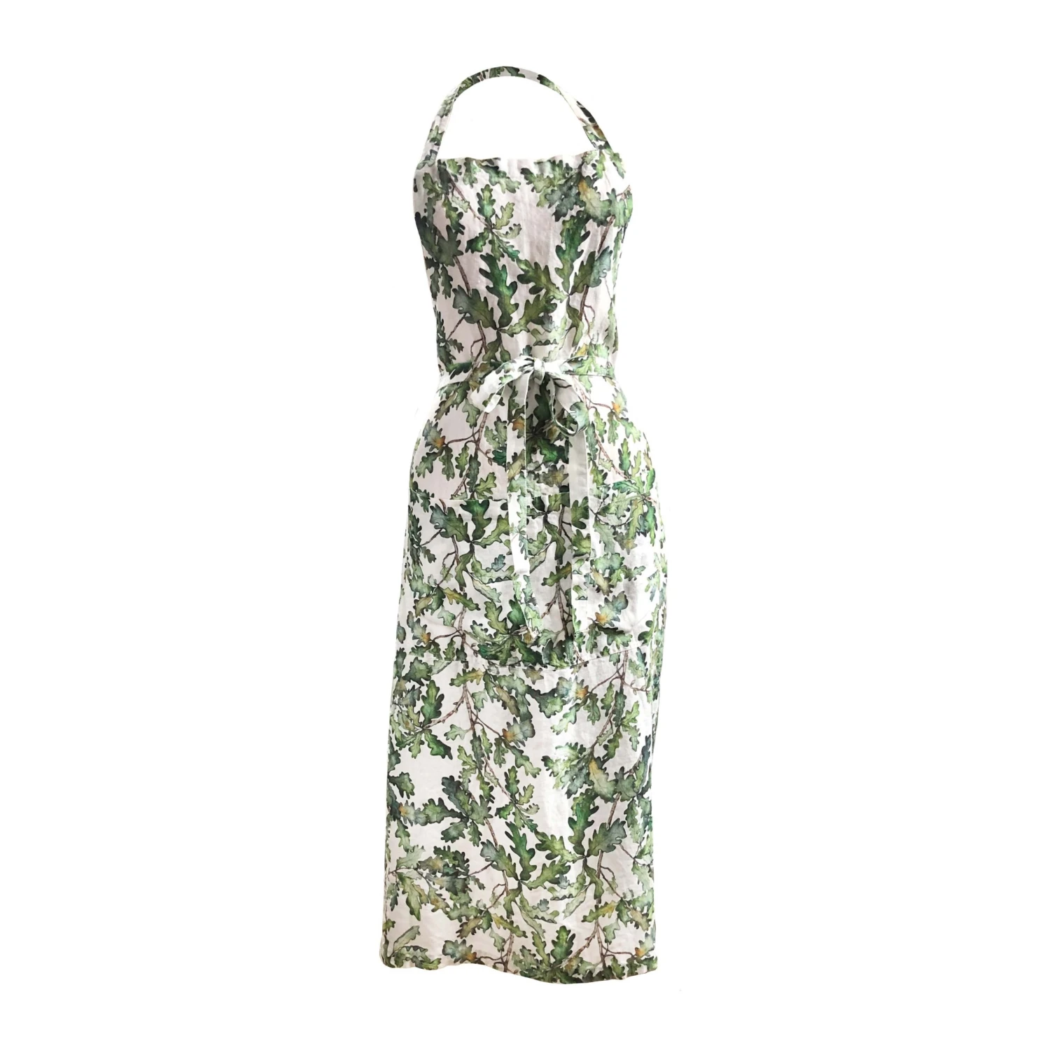 The aprons are 100% washed European linen. They are adjustable at the neck and have a large pocket on the front. The aprons are elegantly long but can be folded up when tied.