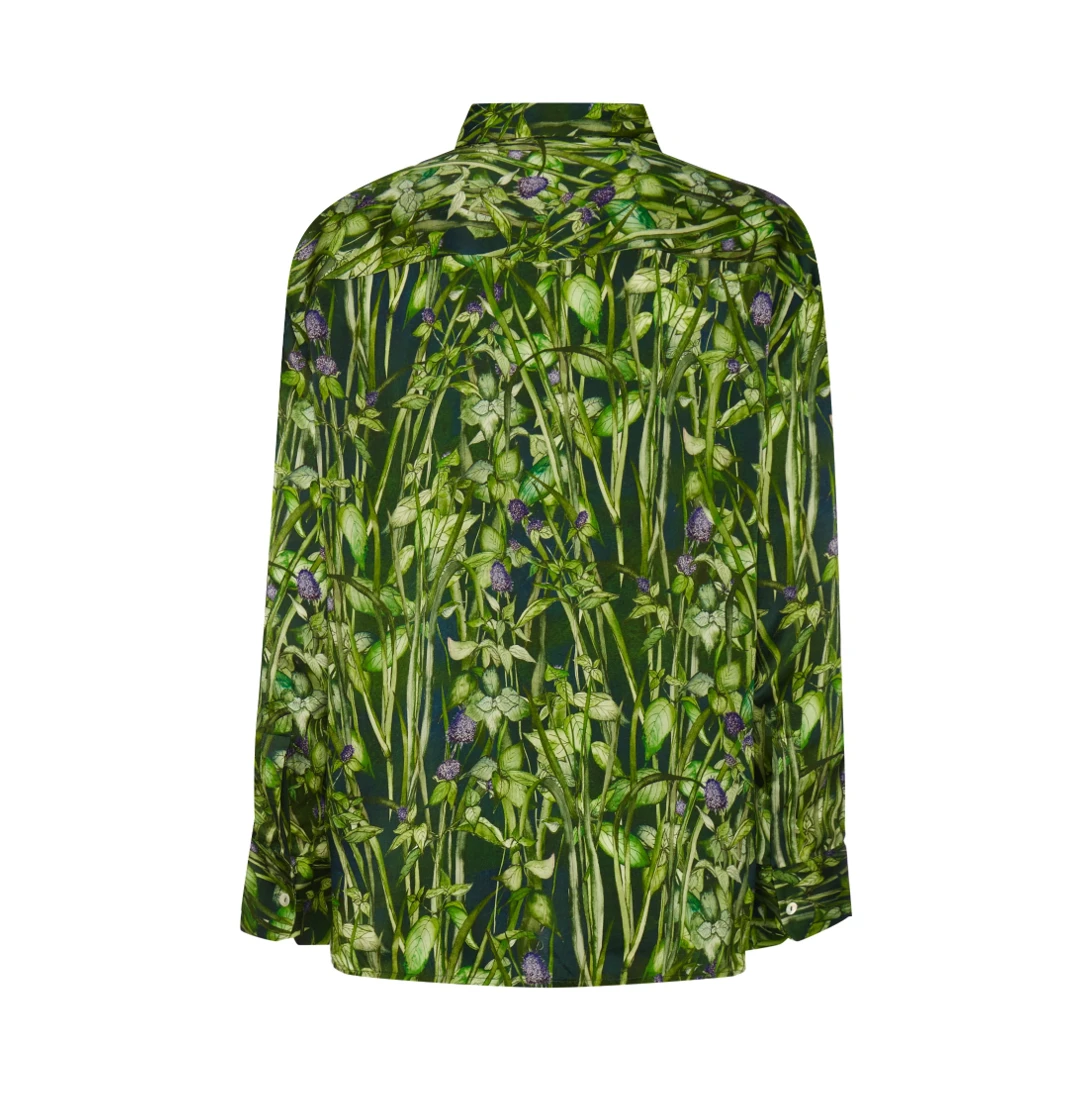 Finished with a sharp collar, the shirt makes a smart co-ord with the matching silk trousers or shorts, or elevating a pair of denims. Wear it tucked in, tied in a knot , or just loose. The shirt makes a stunning combination with the dress too, tied in knot at the front.Â