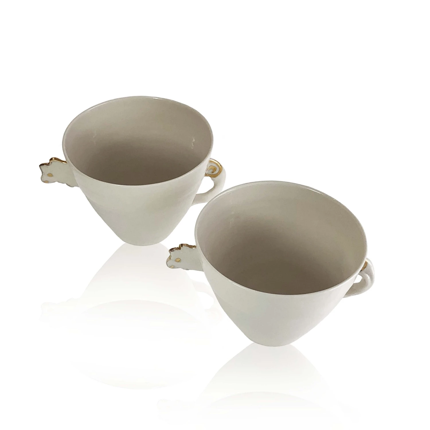 The production is complete: from the shaping from slabs and at the wheel to the bespoke colouring to match our Bertioli by Thyme prints, from the intricate finishes to the firing of the gold to the third fire. These pieces truly are little treasures.