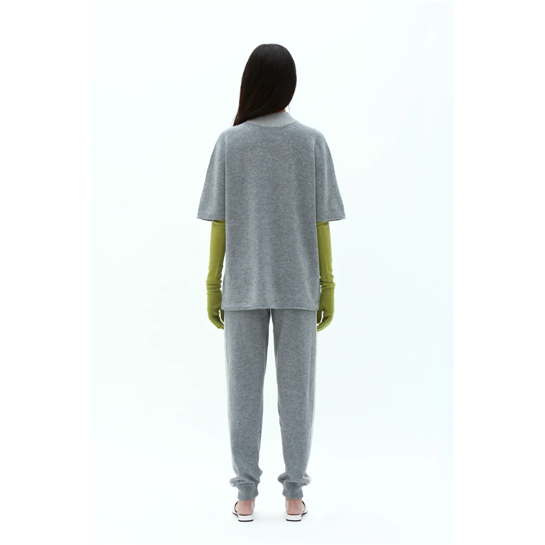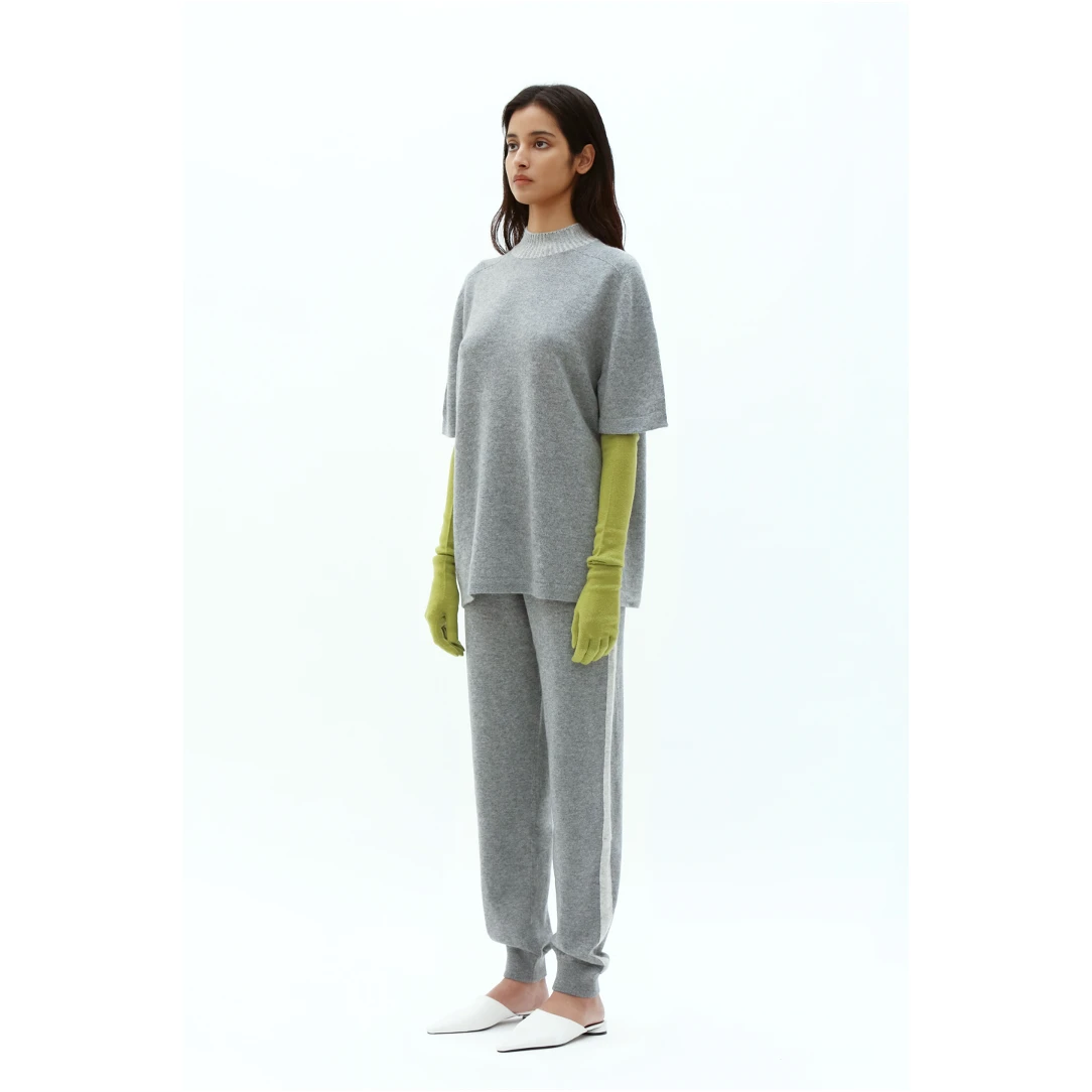 Cashmere trousers with ankle cuff and contrast side panel in grey.