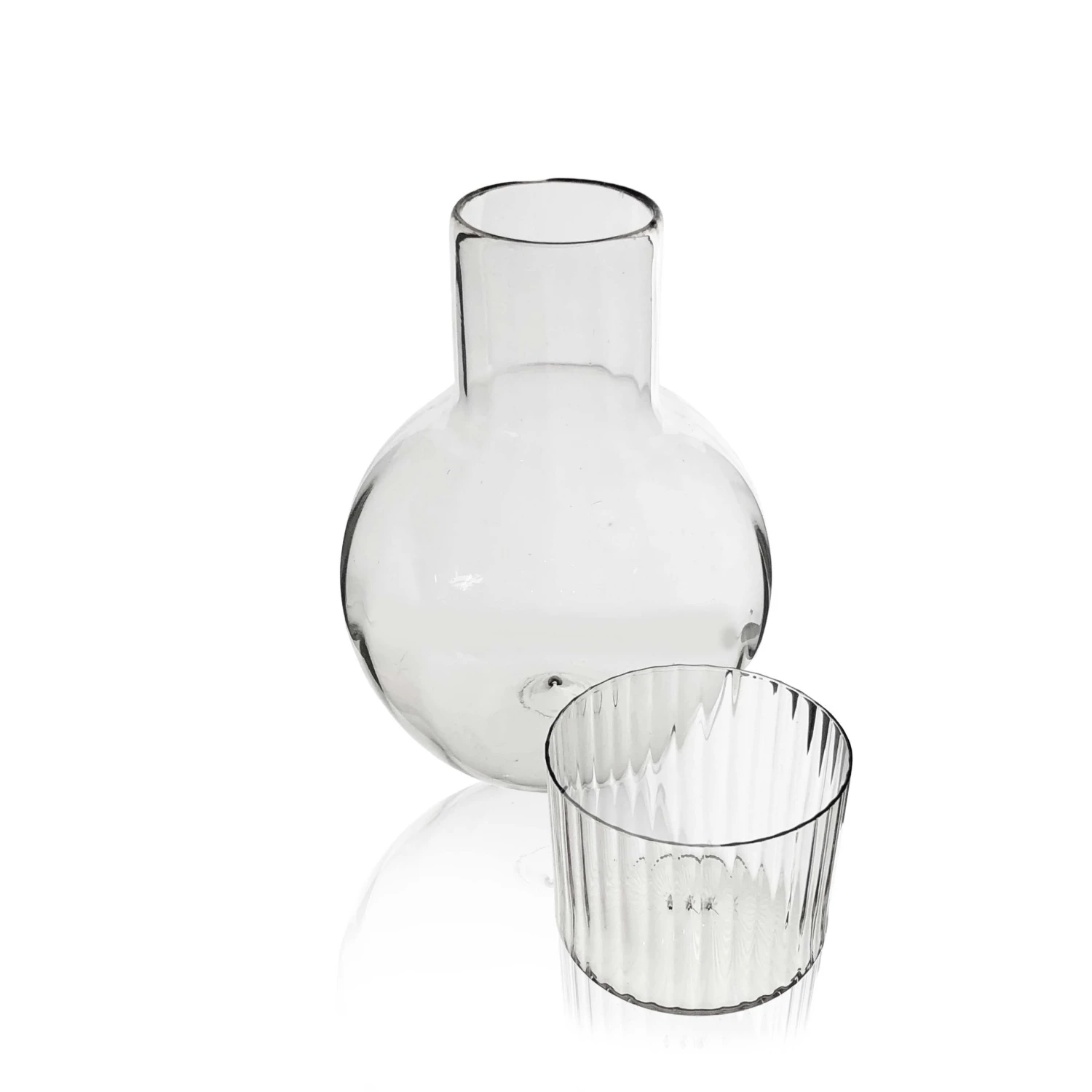 This simple carafe looks so elegant against our Bertioli by Thyme table linens. It cones with a tumbler glass which sits on top, perfect for your bedside table.
