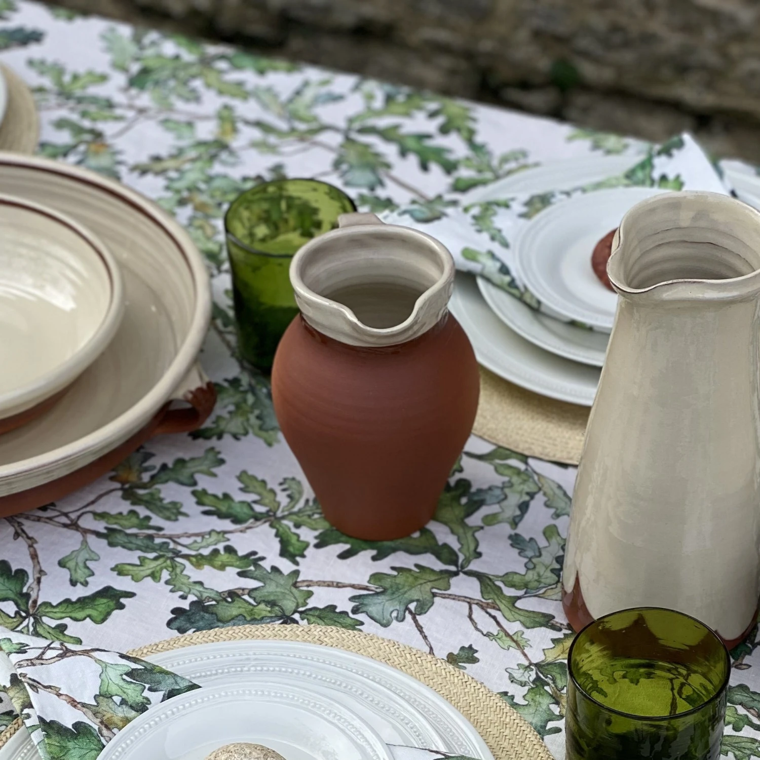 Our Farmhouse Pottery is a staple in all the kitchens across Thyme. These jugs are available in off white and can hold a pint of water or wine. They can also be used as a lovely decorative vase.